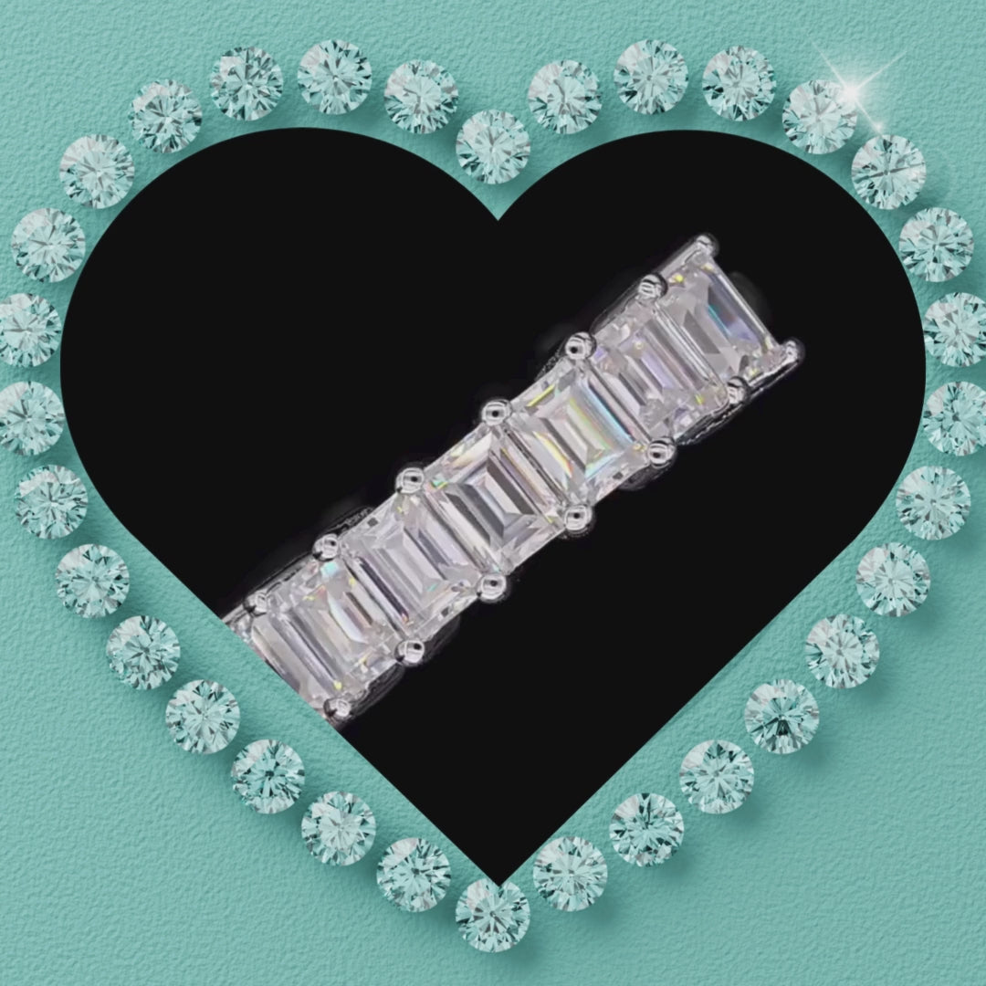 Each 4 × 3mm moissanite is expertly aligned to create a seamless ribbon of light, with a total carat weight of 0.3ct. The baguette cut delivers a sleek, architectural look while maintaining exceptional brilliance — subtle yet undeniably striking.