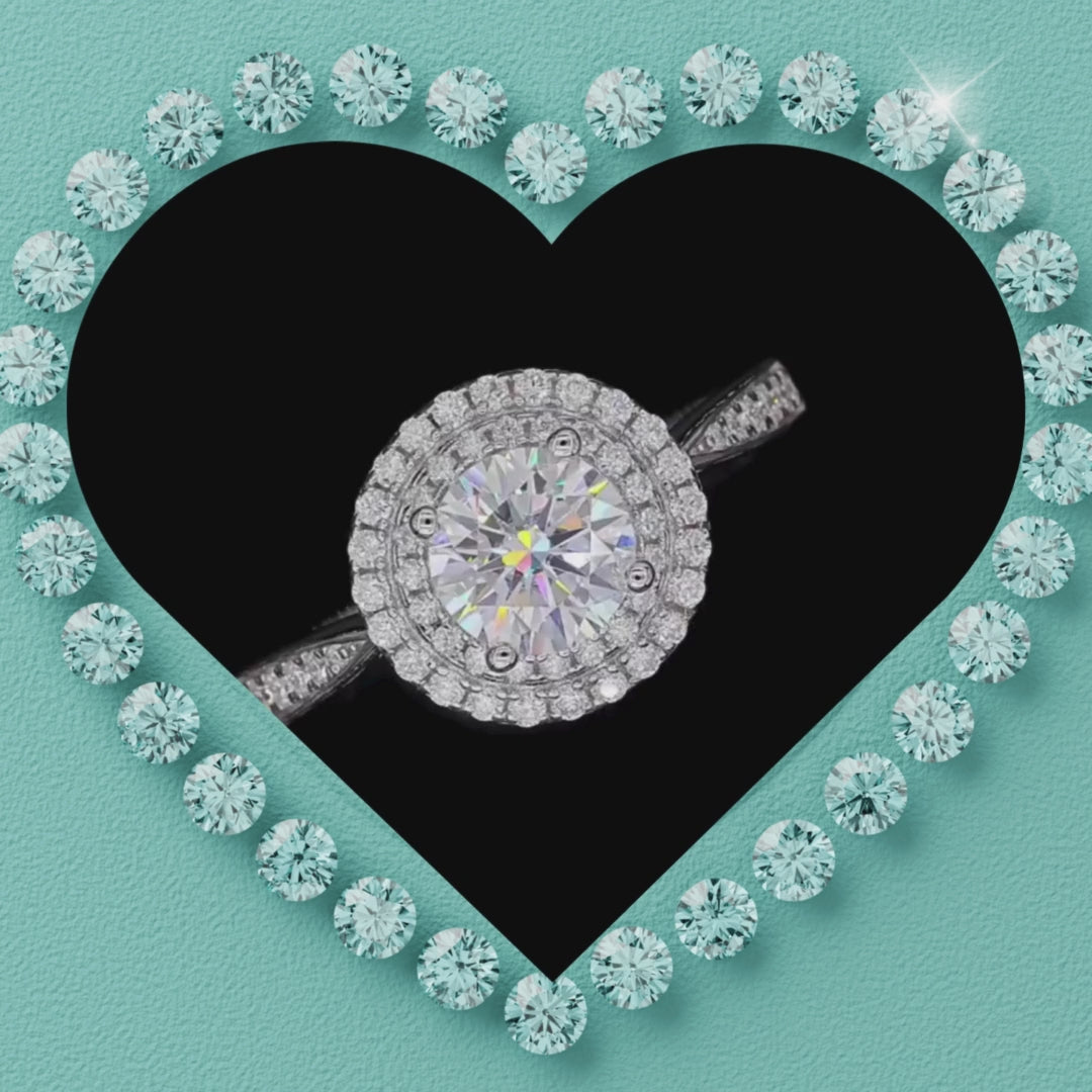 Timeless and undeniably striking, the Monroe Round Double Halo Ring is designed to deliver maximum brilliance with classic appeal. At its centre sits a perfectly cut round moissanite, chosen for its exceptional fire and diamond-like sparkle.