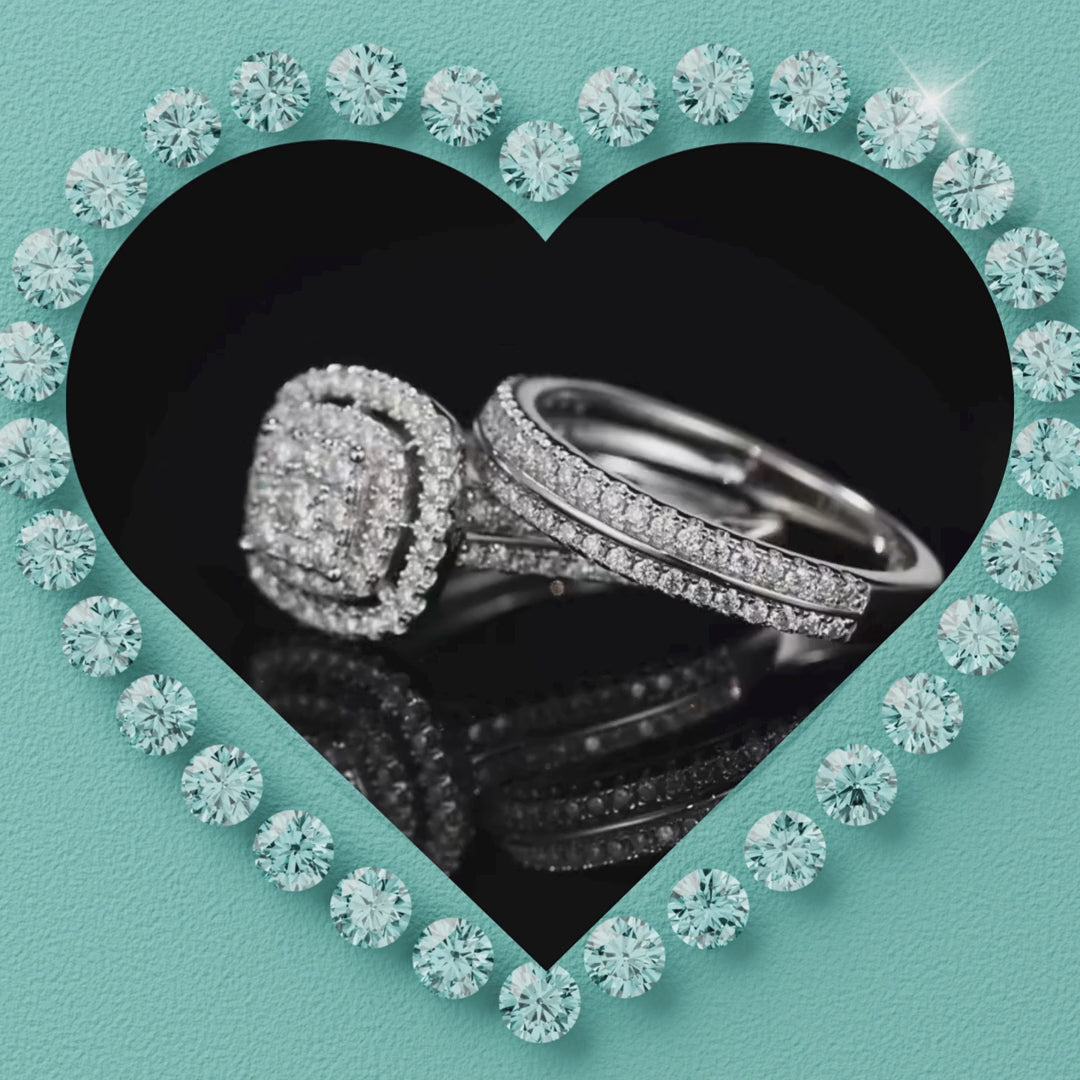 The Solenne Double Halo Ring Set features a radiant round moissanite centre framed by a striking double halo, paired with a perfectly matched pavé band for a seamless, high-impact finish. The halo measures approximately 10.9mm across, creating bold presence, while the refined 3mm band and 2.5mm halo depth keep the profile balanced and comfortable for everyday wear. Crafted with high-fire, diamond-like moissanite, Solenne delivers timeless brilliance and statement sparkle — without the diamond price tag.