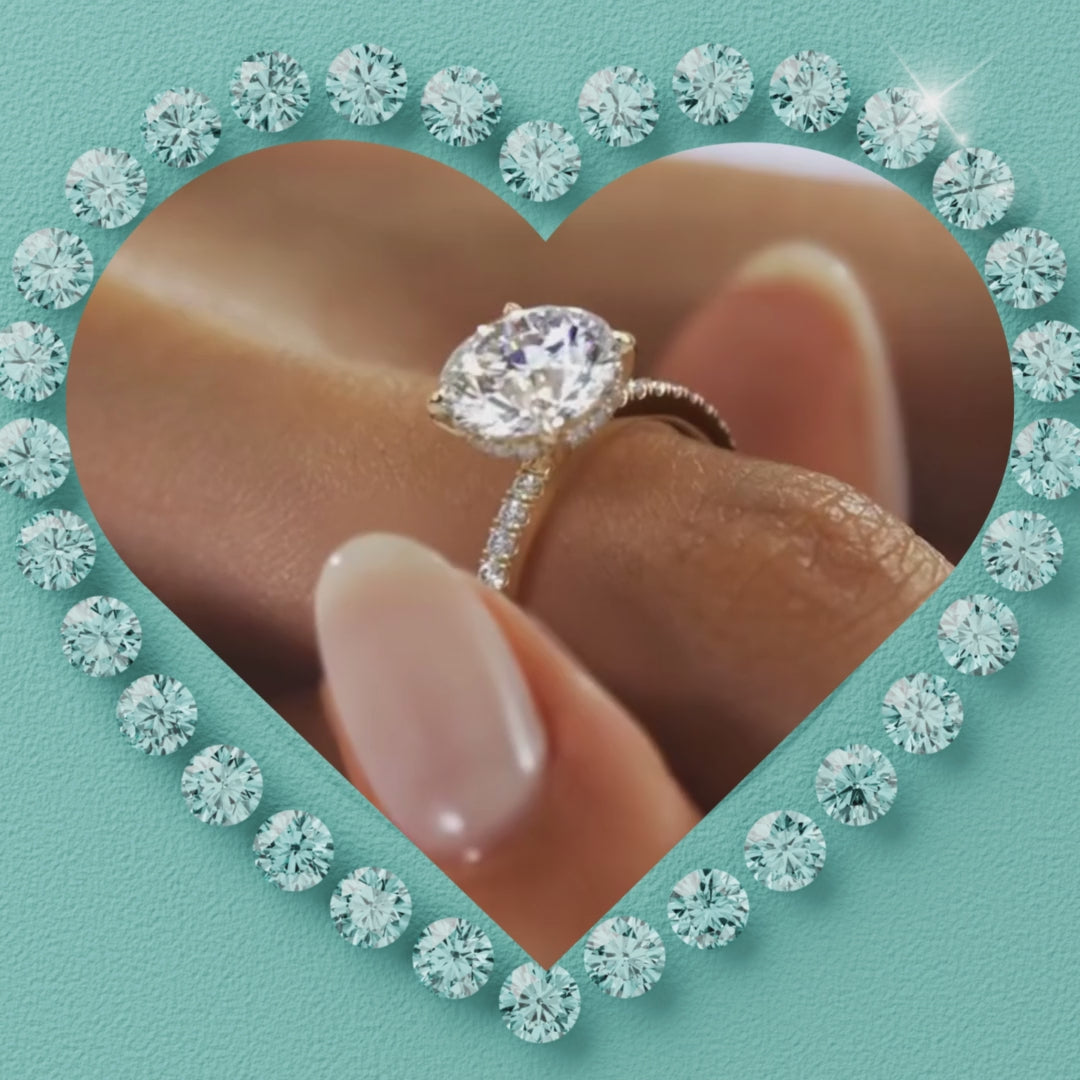 It’s brilliance with a twist. This 2 carat round moissanite solitaire dazzles from every angle, while a hidden halo tucked beneath the setting adds an unexpected shimmer only you’ll know about. Sleek, sophisticated, and full of surprisesβ€”classic elegance above, secret sparkle below.